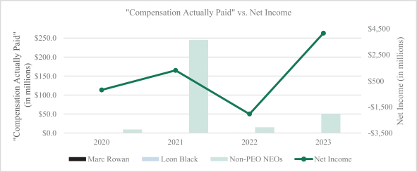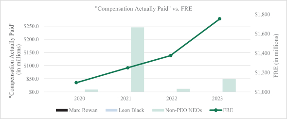 | • | decisions related to expenses, such as determining annual discretionary bonuses and equity-based compensation awards to its employees. With respect to compensation, management seeks to align the interests of certain professionals and selected other individuals with those of the investors in the funds and those of Apollo’s stockholders by providing such individuals a profit sharing interest in the performance fees earned in relation to the funds. To achieve that objective, a certain amount of compensation is based on Apollo’s performance and growth for the year; and |