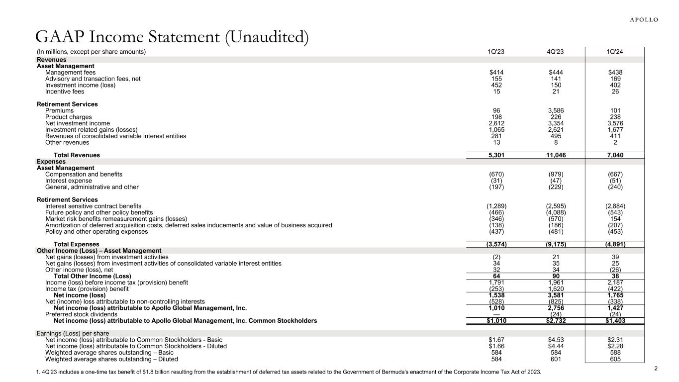 Apollo Global Management, Inc. First Quarter 2024 Earnings