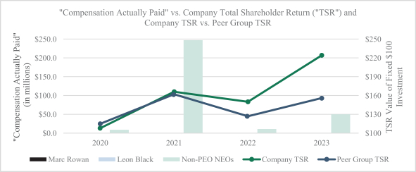 | • | decisions related to expenses, such as determining annual discretionary bonuses and equity-based compensation awards to its employees. With respect to compensation, management seeks to align the interests of certain professionals and selected other individuals with those of the investors in the funds and those of Apollo’s stockholders by providing such individuals a profit sharing interest in the performance fees earned in relation to the funds. To achieve that objective, a certain amount of compensation is based on Apollo’s performance and growth for the year; and |