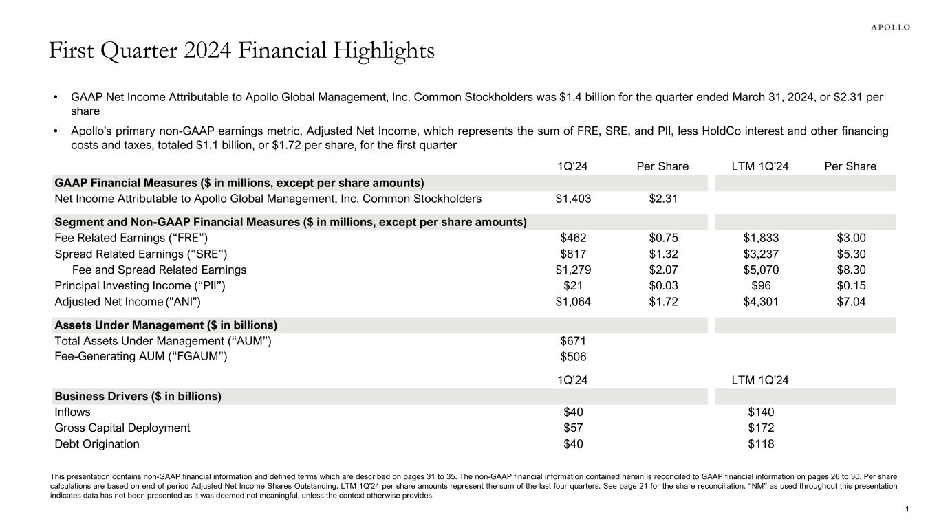 Apollo Global Management, Inc. First Quarter 2024 Earnings
